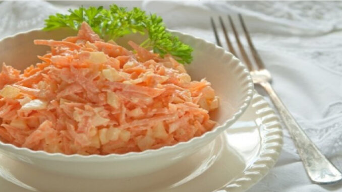 This carrot salad is an ideal dish for anyone who wants to lose weight, improve digestion, or simply stay in good shape. It is full of fiber, vitamins, and minerals that will support your health, and it is also low in calories. Combined with egg and sour cream, this salad is not only tasty but also nutritious. Prepare this simple and healthy recipe for an evening meal and enjoy great flavors and benefits for your body!