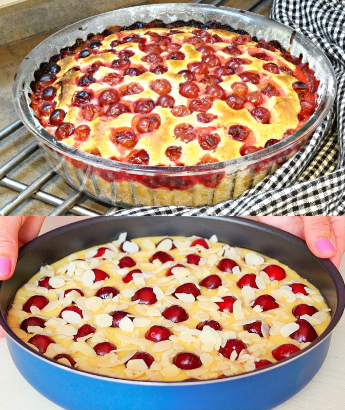 Discover a light and refreshing cake that combines juicy cherries with the sweet flavor of almond flakes. This recipe is simple, quick and ideal for any occasion – from afternoon coffee to festive family gatherings. The cake is moist thanks to the sour cream and delicate batter, while the almonds give it a crunchy contrast.