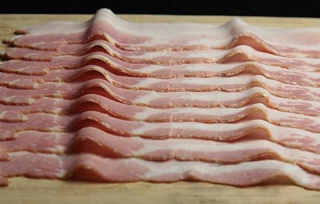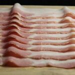 - Fold the overhanging bacon over the surface of the roulade and place in an oven preheated to 170 °C.