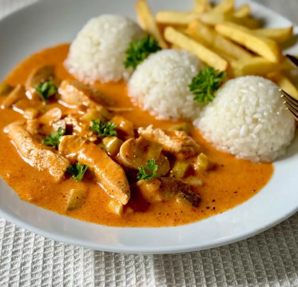 Chicken stroganoff is proof that a quick lunch can be exceptionally tasty. The combination of tender meat, pronounced Worcestershire sauce and a creamy-tomato base creates a dish that will delight the whole family. It’s a versatile recipe suitable for everyday cooking as well as weekend menus. If you’re looking for a hearty and simple meal, chicken stroganoff is a great choice.