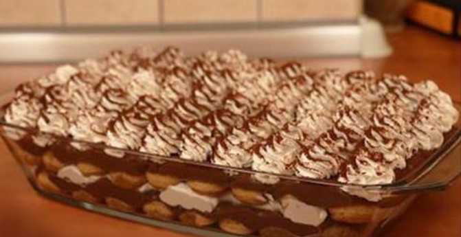 The chocolate-pudding cake with ladyfingers in the style of tiramisu is the perfect dessert for all sweet-tooths! Whether you’re expecting guests or have a craving, this quick recipe is the ideal choice if you’re short on time. Besides, you won’t even have to turn on the oven to prepare this treat.