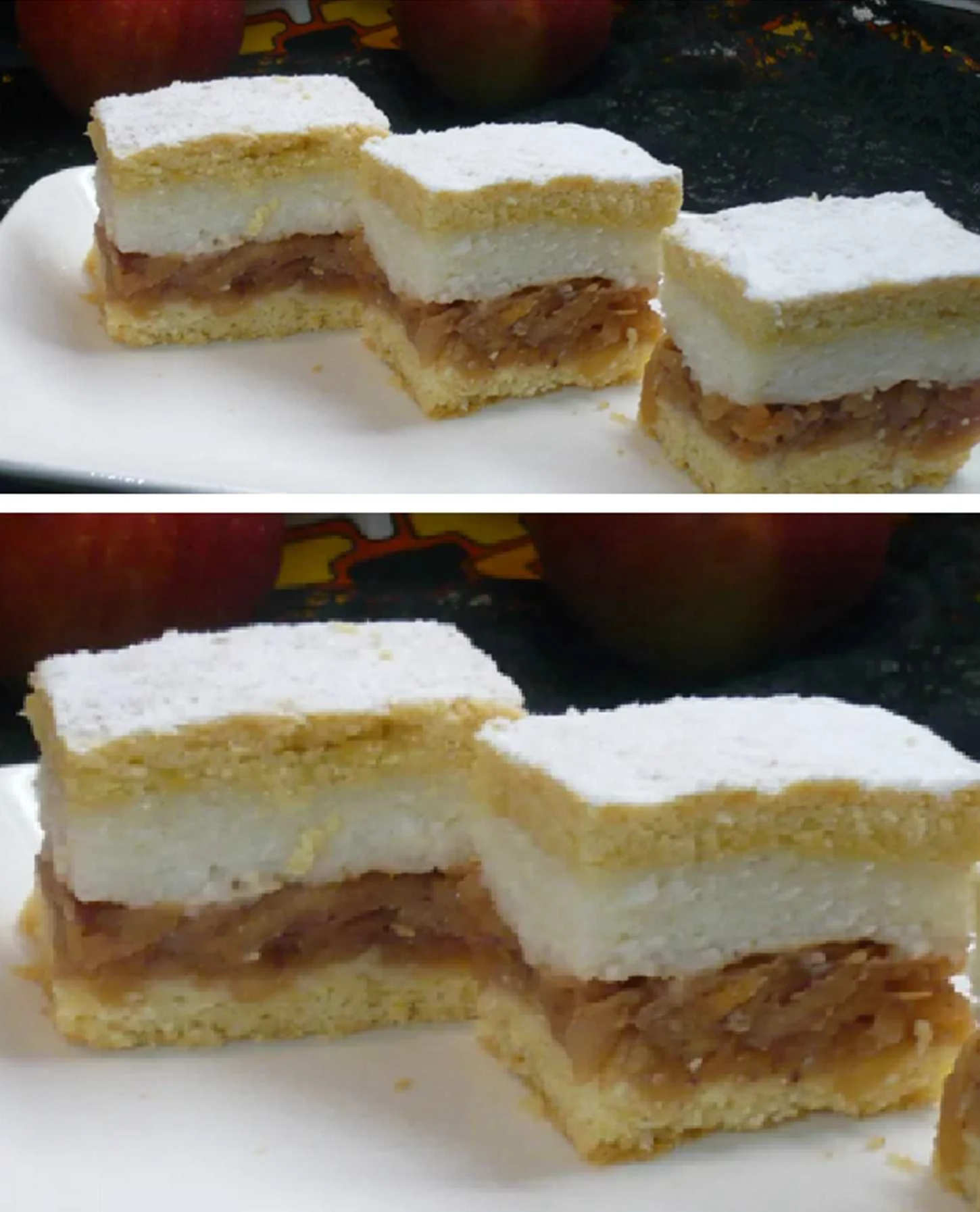 The creamy apple cake with coconut is an ideal choice for anyone who likes delicate and balanced desserts. The combination of apples, cinnamon and coconut cream creates a harmonious flavor that appeals to both children and adults. The cake slices well, stays moist for a long time and tastes great even the next day.