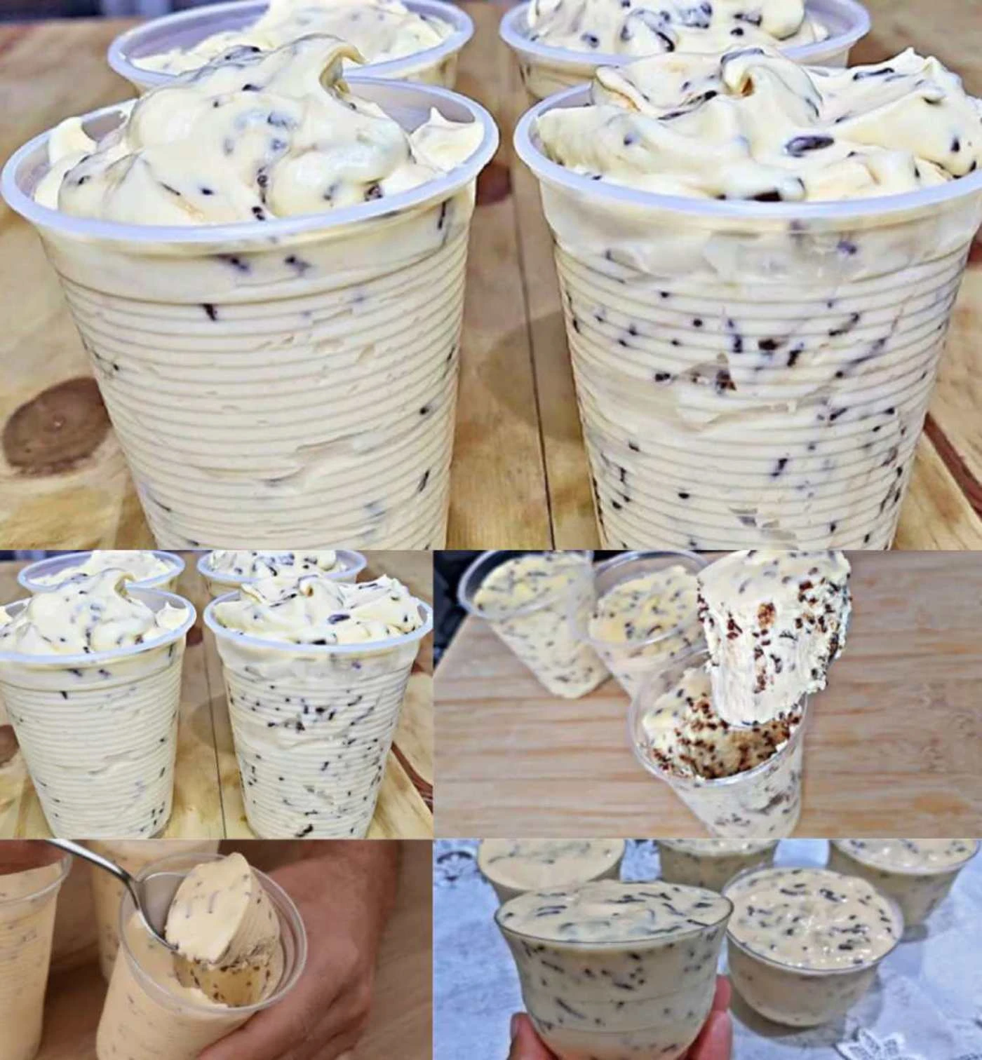 Do you want a quick “ice cream–style” dessert that you can make in a few minutes and that tastes like it came from a patisserie? This is exactly it. Just whip the sour cream with condensed milk and whipping cream, stir in pieces of chocolate and fruit, fill the cups and freeze. The result is creamy, smooth and perfect for hot days.