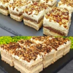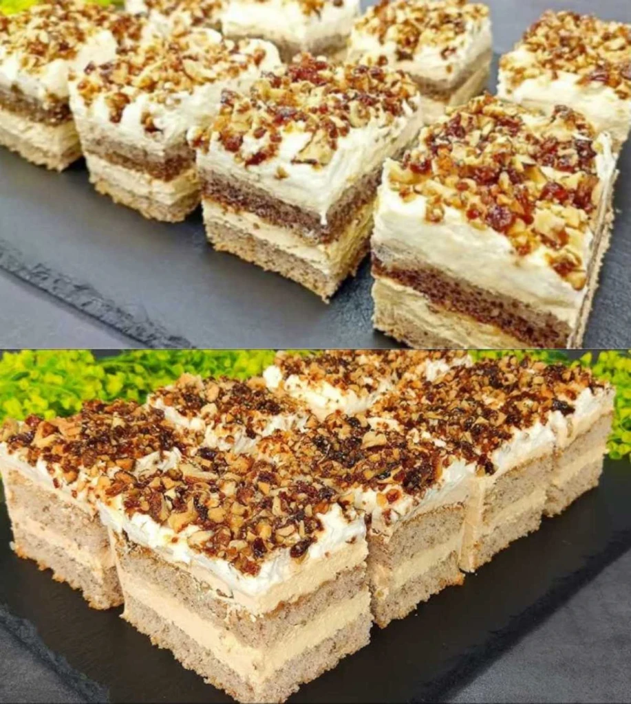 Creamy slices with caramelized nuts are a sweet work of art that combines delicacy, richness of flavors and textures. They are perfect for the festive table, but also delight on a Sunday afternoon with the family. Prepare them in advance, chill and serve with grace – success guaranteed!