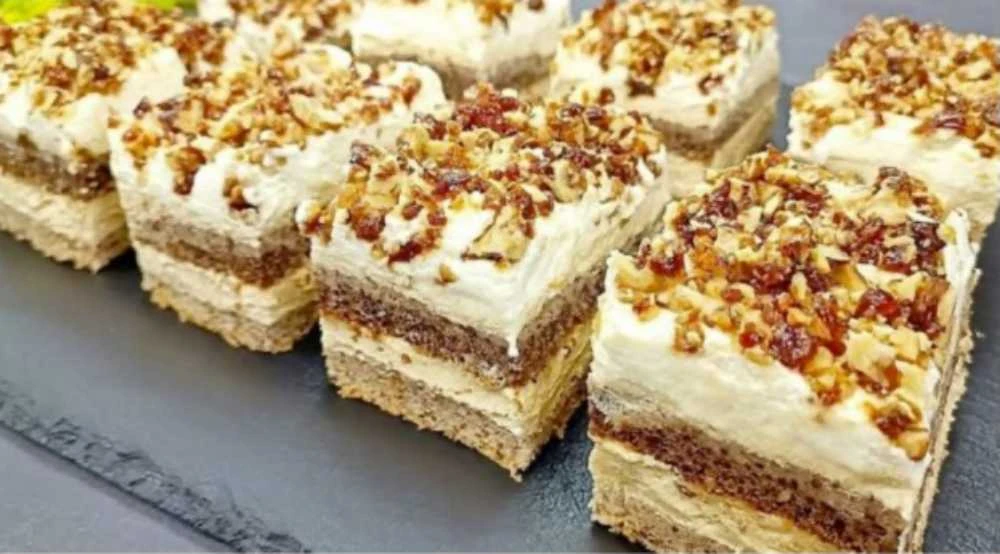 Creamy slices with caramelized nuts are a sweet work of art that combines delicacy, richness of flavors and textures. They are perfect for the festive table, but also delight on a Sunday afternoon with the family. Prepare them in advance, chill and serve with grace – success guaranteed!