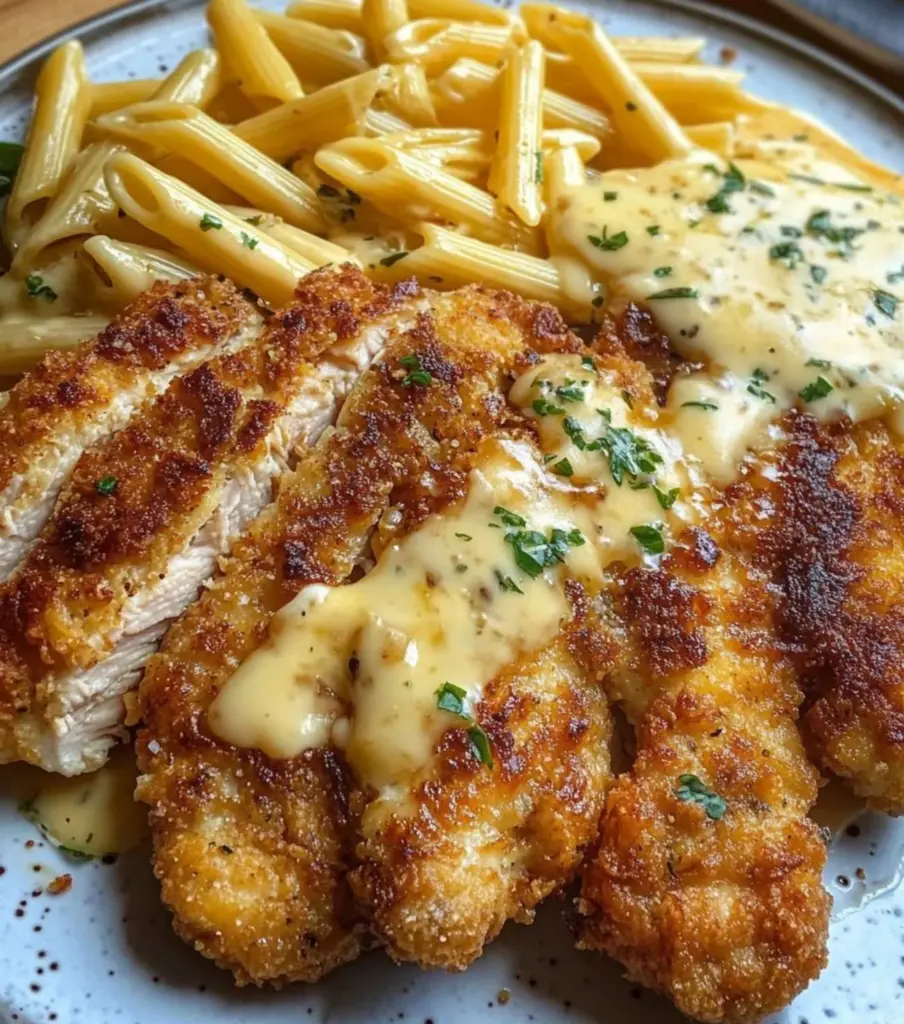 The combination of crispy chicken, fragrant garlic-cheese sauce and simple buttery pasta is one of those dishes that disappear from plates without a word. The method is quick, the ingredients accessible and the result consistently excellent. Add the recipe to your family repertoire – even a beginner can manage it and it tastes good to both children and adults.