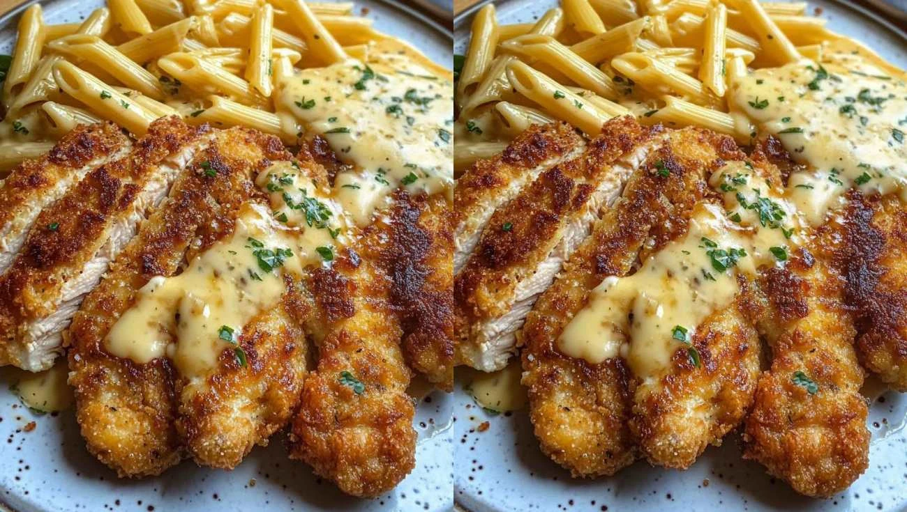 The combination of crispy chicken, fragrant garlic-cheese sauce and simple buttery pasta is one of those dishes that disappear from plates without a word. The method is quick, the ingredients accessible and the result consistently excellent. Add the recipe to your family repertoire – even a beginner can manage it and it tastes good to both children and adults.