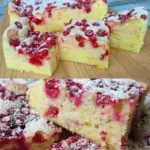 • Filling and baking Line a baking tray (30 × 20 cm) with baking paper and spread the batter over it. Evenly sprinkle the surface with currants. Bake in a preheated oven at 180 °C (fan 160 °C) for about 35 minutes, until the edges are golden and a skewer comes out clean.