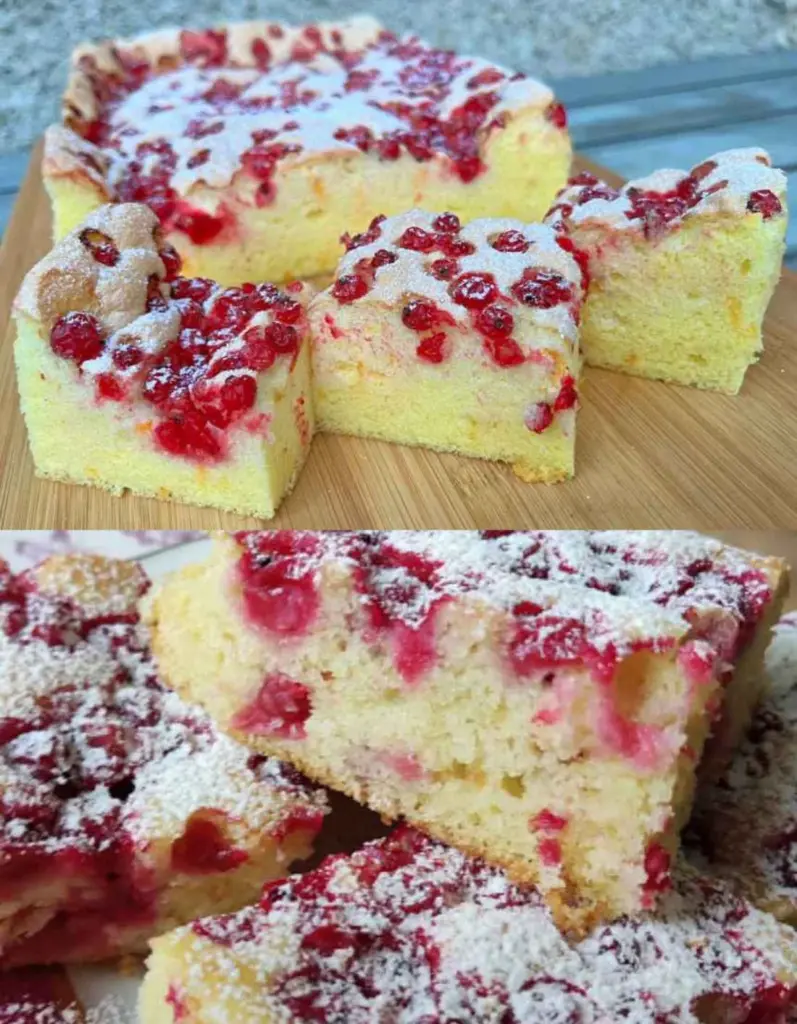 This simple pudding cake with currants contains no flour, yet it is surprisingly moist and light. Thanks to the vanilla pudding and the whipping of the egg whites, its structure resembles a spiderweb, and it’s ready in just a few minutes.