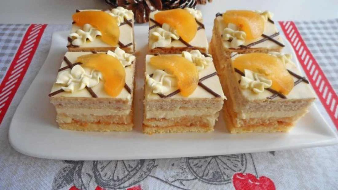 The apricot pastry „Seventh Heaven“ impresses not only with its rich combination of layers, but also with the contrast of delicate cream, juicy fruit and crunchy nut dough. Thanks to the syrup with rum it acquires a slightly aromatic note and the chocolate glaze gives it the true festive shine. Serve chilled with coffee or afternoon tea and transport your guests into a sweet fantasy.