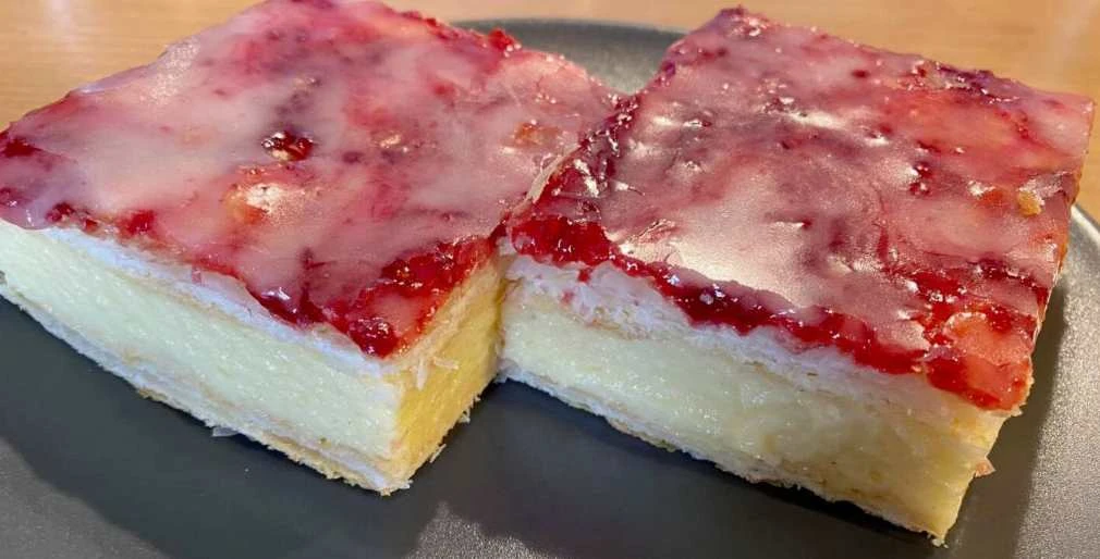 Egg-yolk slices from puff pastry are a quick and impressive classic. Crisp puff pastry, light vanilla cream and a fresh glaze create a harmony of flavors and textures. Thanks to baking the sheets in advance and the simple cream, you have a dessert without unnecessary complications. Let it cool well and serve as an elegant sweet finishing touch.