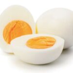 - Cut the cooked eggs in half lengthwise.
