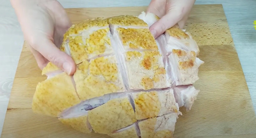- Unwrap the baked meat from the foil and brush it all over with the prepared marinade on all sides.