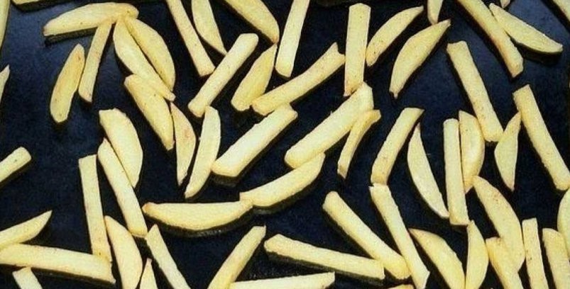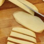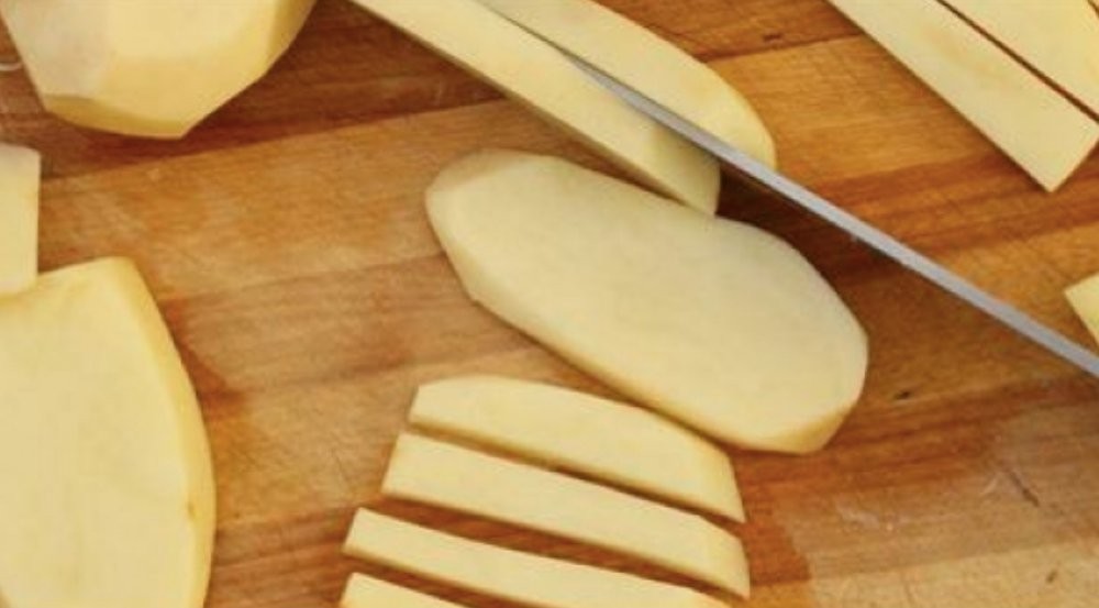 - First, we cut the potatoes (into fries about 1 cm thick).