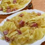 Fleky with sauerkraut and pieces of smoked pork knuckle represent the ideal combination of simplicity and traditional flavor. Thanks to the short preparation time and accessible ingredients, this hearty dish will be loved by the whole family. Try it for your next family dinner and transport yourself for a moment to the magical world of Czech home cooking.