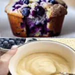 • Combining the batter Pour the wet mixture into the dry and gently stir just until combined (do not mix for long, a few lumps are fine). Carefully fold in the blueberries.