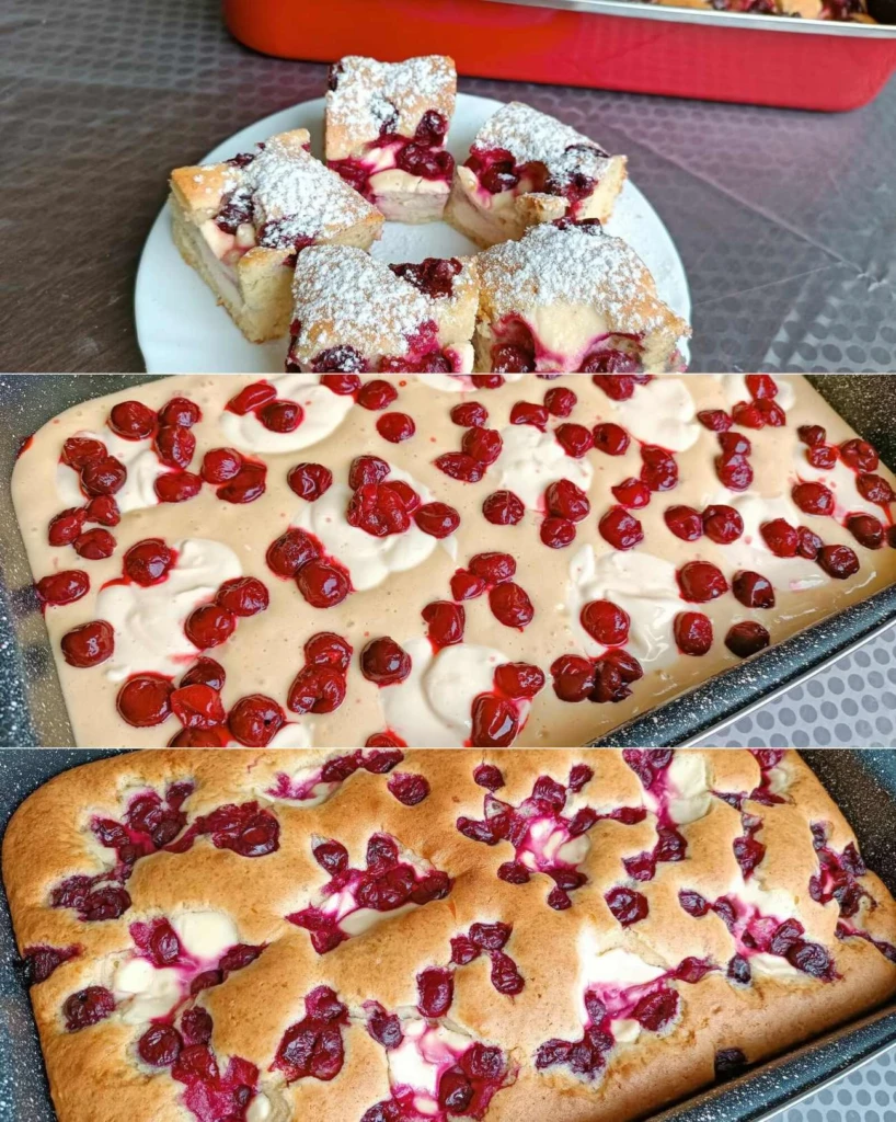 This bublanina is a great way to use up seasonal fruit. The quark gives the cake moisture, while the sour cherries provide a refreshing tartness. Whether you make it for Sunday or just for an afternoon coffee, it will always delight the whole family. If you have an excess of cherries or sour cherries, be sure to save this recipe — it will become your summer staple.