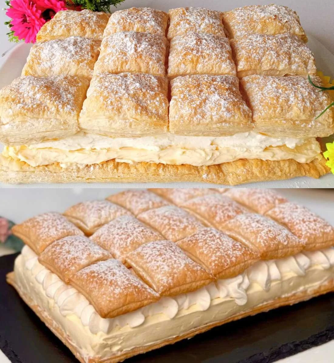 Fluffy cream slice from puff pastry is a great choice if you want to prepare a quick, yet luxuriously looking and tasty dessert. The combination of delicate cream, whipped cream and crisp pastry will surely delight you – and on top of that you can make it even without much experience in the kitchen. Ideal for Sunday afternoons and family celebrations.