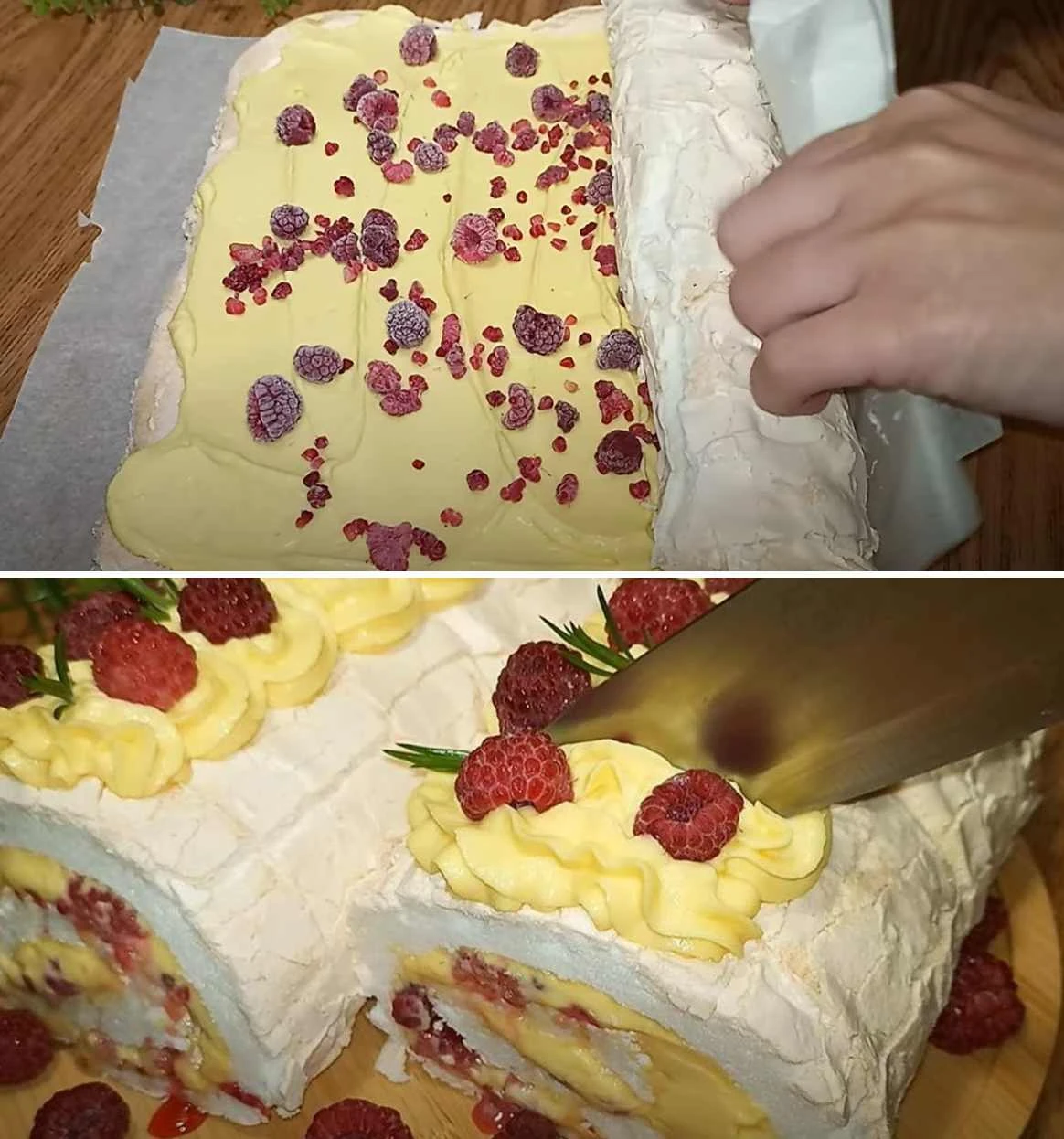 This cream roulade with raspberries is an ideal choice for those who want to make a fresh and not overly sweet dessert. The delicate egg-white sponge, creamy filling and juicy raspberries form a perfect harmony of flavors. The roulade looks great, slices easily and tastes even better than it looks. We recommend preparing it a day in advance so the flavors can fully meld.