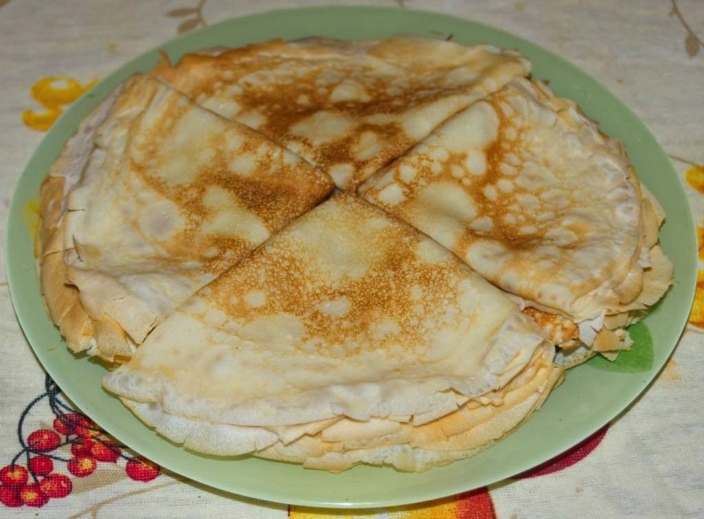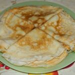 - Batter: Whisk the eggs with the sugar (amount to taste). Add the starch and stir until all lumps disappear. Pour in the milk and sunflower oil and mix well. Let the batter rest for about 15 minutes. Grease the pan with sunflower oil or a slice of bacon and fry the pancakes only on one side.