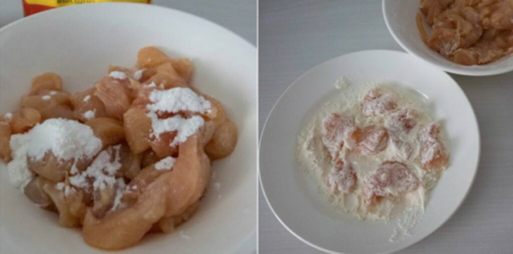 - First wash the chicken breasts, dry them and remove the membranes. Cut them into pieces of any size. You can either prepare traditional cutlets or small nuggets.