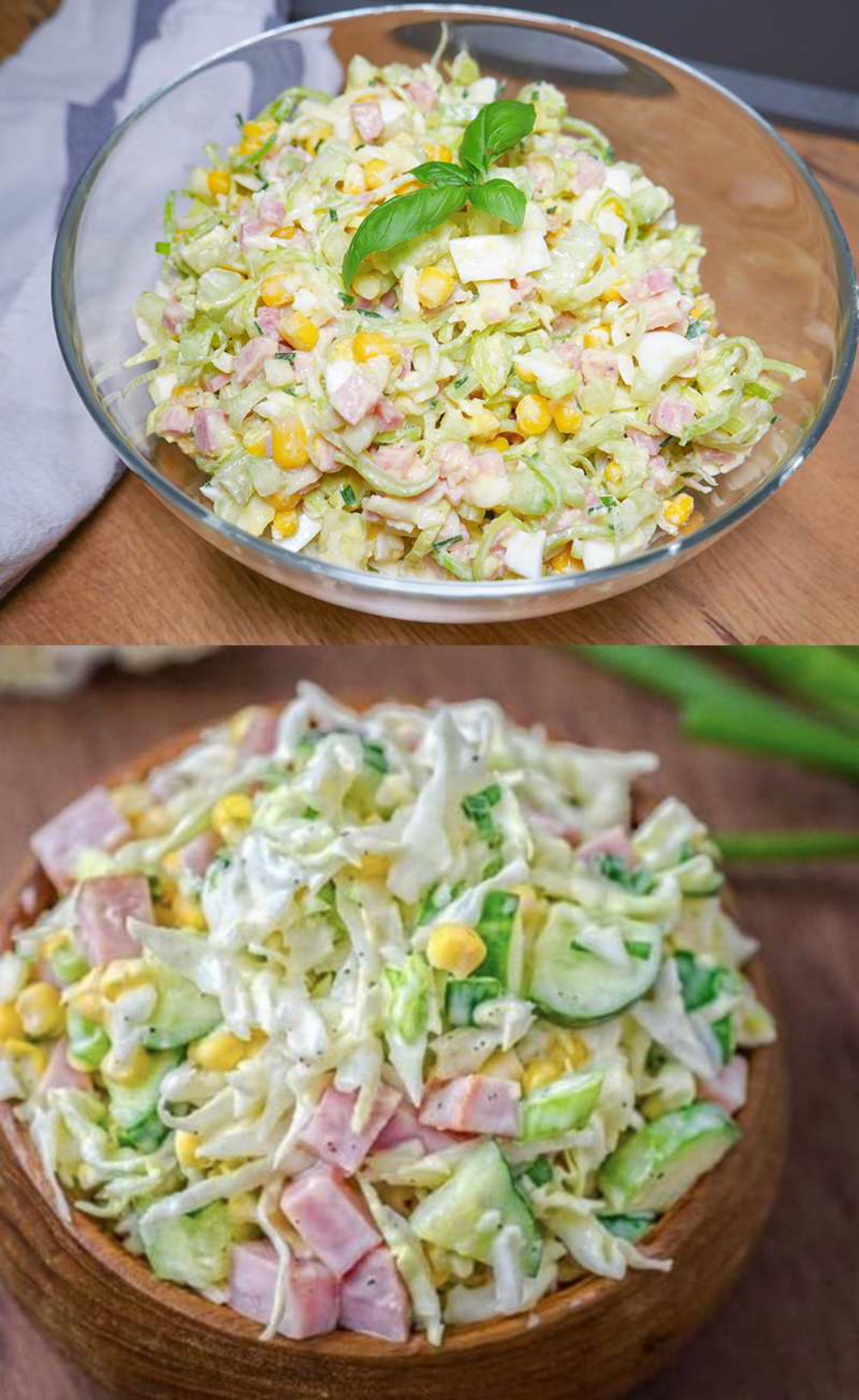 Gourmet cabbage salad with ham and corn: quick, fresh and absolutely delicious