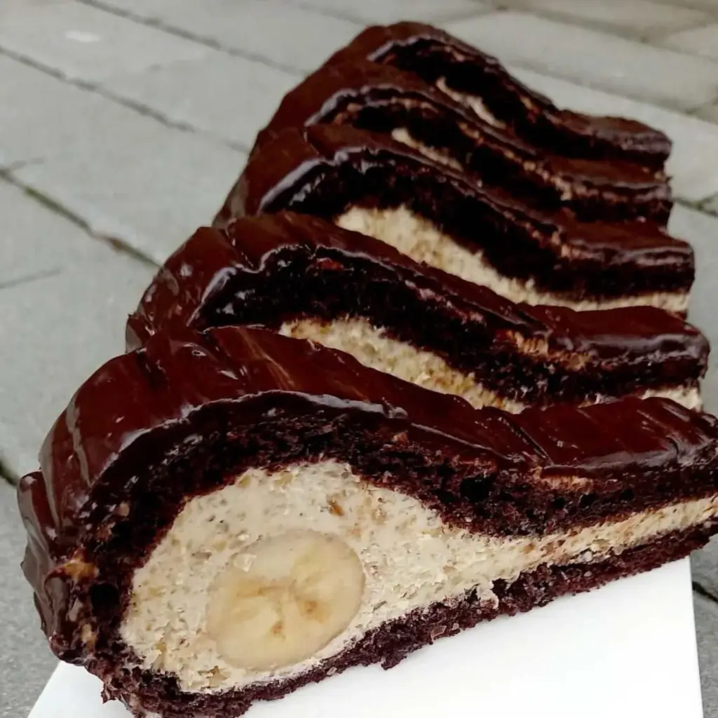 The legendary „elephant tears“ are a fluffy cocoa roulade with a delicate pudding-and-buttercream, a banana in the center and a glossy chocolate glaze. It looks festive, slices well and is loved by both children and adults.