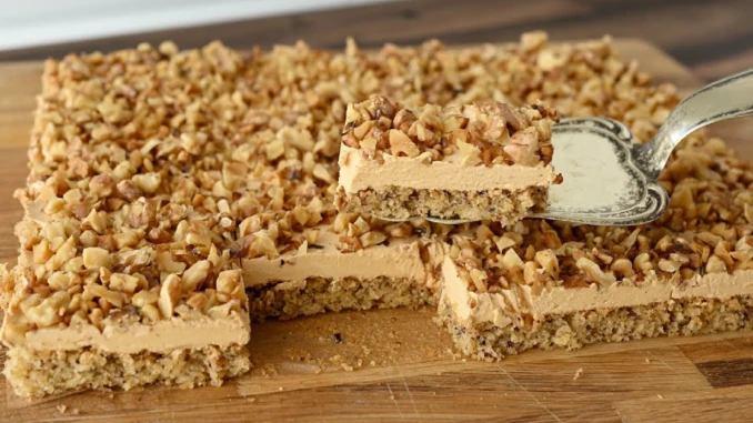 This hazelnut pastry is not only visually attractive, but above all incredibly tasty. The combination of hazelnuts and walnuts with caramel cream makes it a perfect festive dessert that every sweet lover will adore. Ideal with a cup of coffee or as a dessert for family celebrations. Try it once and you’ll bake it again and again!