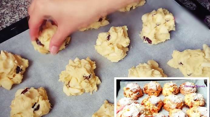 • Shaping and baking: Using a spoon or your hands, shape small mounds and place them on a baking sheet lined with parchment paper. Gently press them with your hands so they are not too tall and bake evenly. Place the sheet into a preheated oven at 180 °C and bake for 10 minutes.