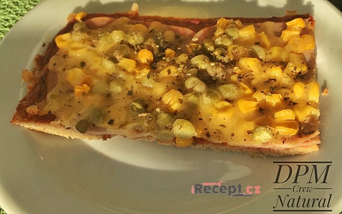 We start by mixing all the ingredients for the dough, mix well and pour onto the prepared tray, spread evenly with a spoon and bake for about 5 minutes (it depends on your oven; the key is that the dough shouldn’t be sticky on top). Meanwhile, chop the vegetables into small pieces. Once the surface of the pizza base is matte, take the tray out.