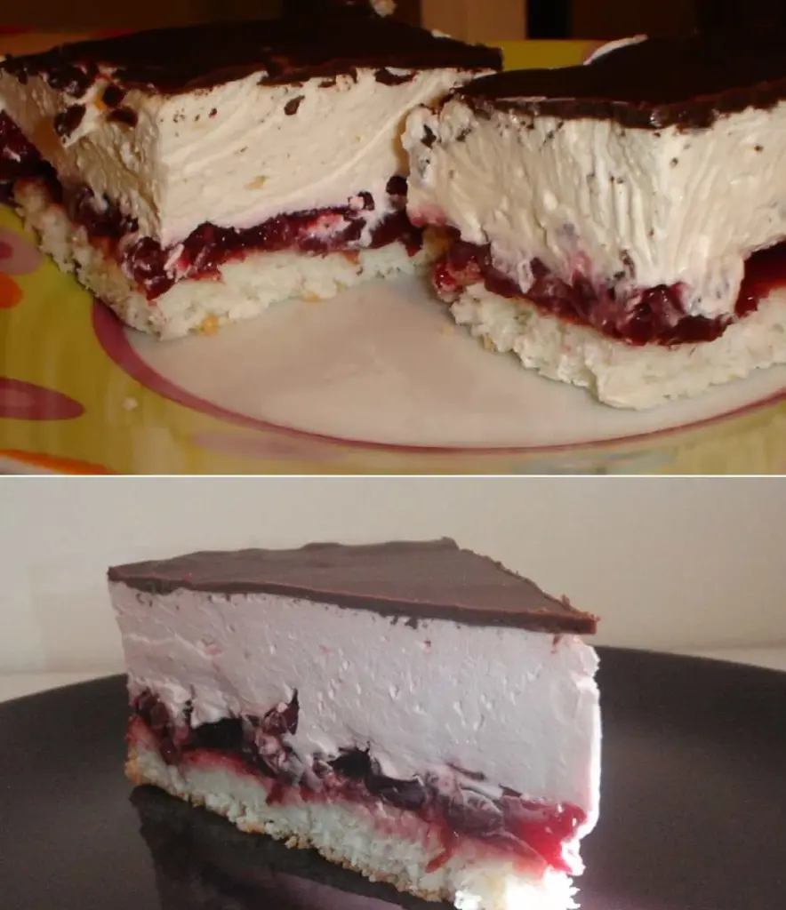 Light as a cloud, fresh and yet beautifully creamy. This “heavenly” cake rests on a very light egg-white coconut base, a juicy cherry layer, a fluffy vanilla cream and a glossy chocolate glaze. An ideal dessert for celebrations and weekend indulgence.