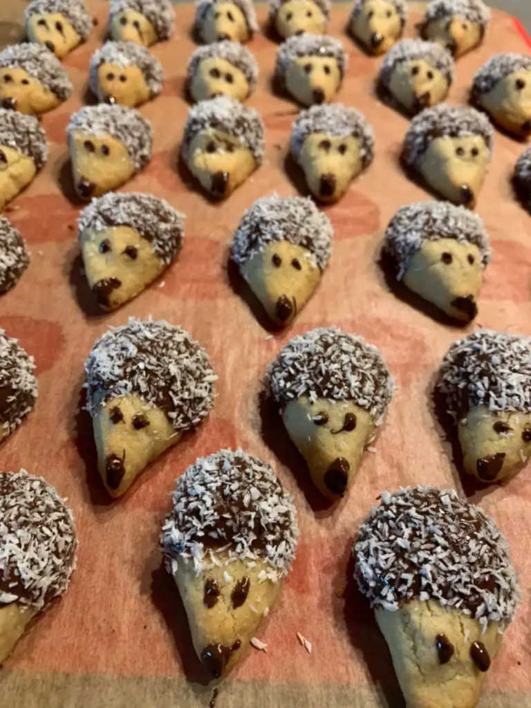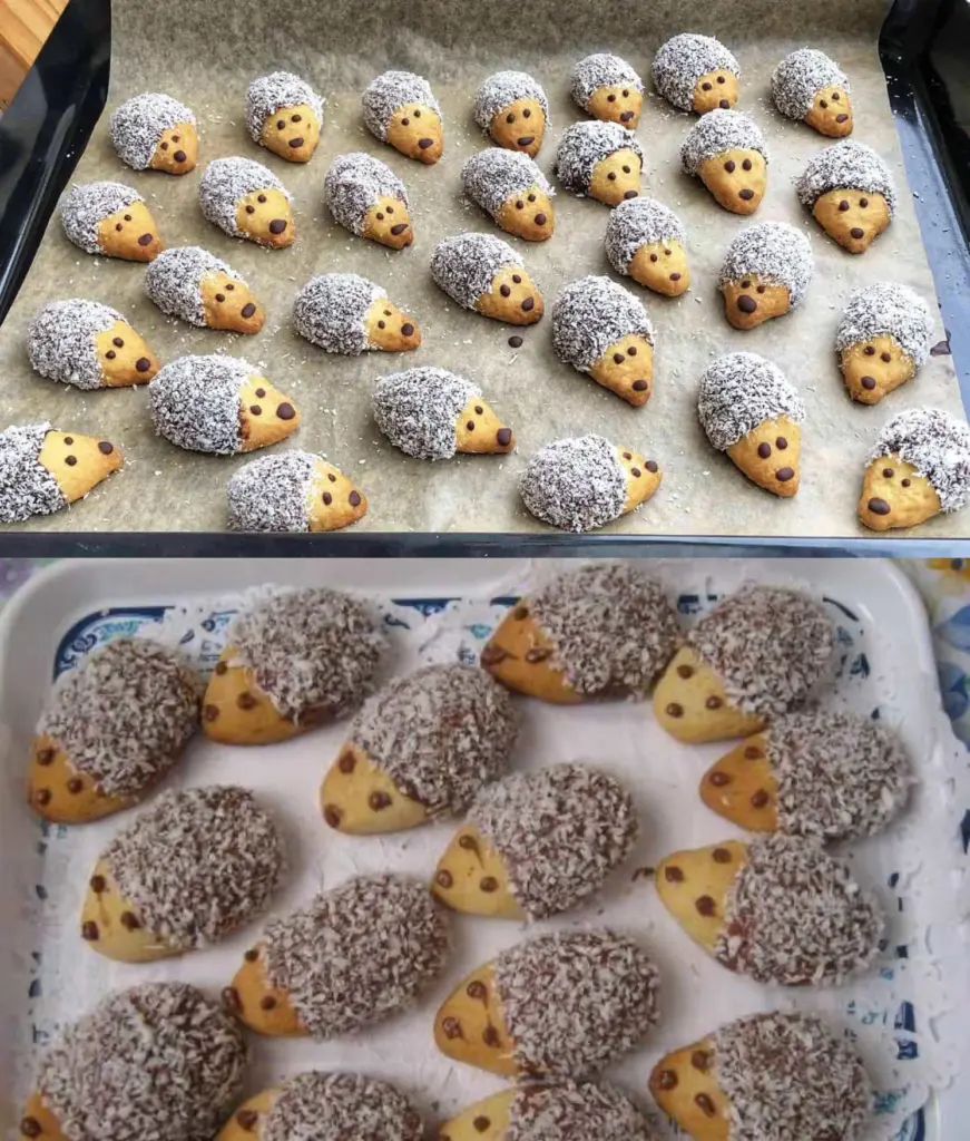 • Decorating: After baking, dip the hedgehogs into melted dark chocolate with a little butter and roll in coconut. Use a toothpick to make the eyes and snout.