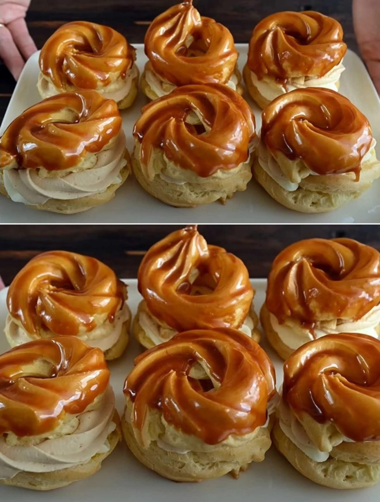 Homemade caramel cream puffs – airy choux pastry with a rich caramel cream