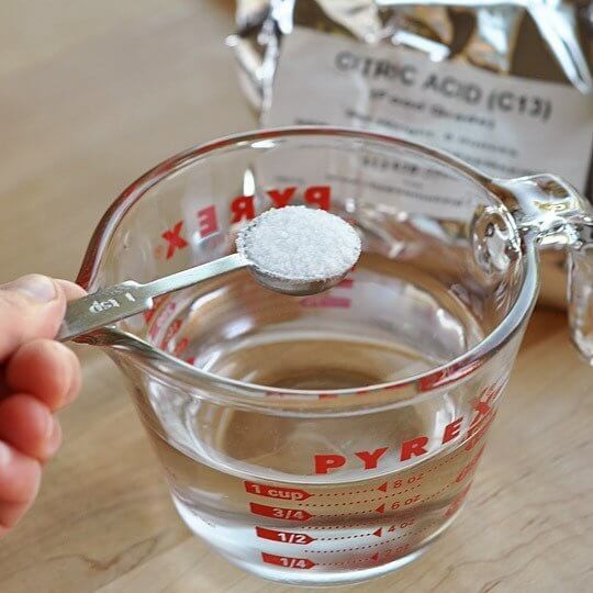 - Dissolve the citric acid in one quarter of a glass of water and in another glass dissolve the vegetable rennet in the same amount of water