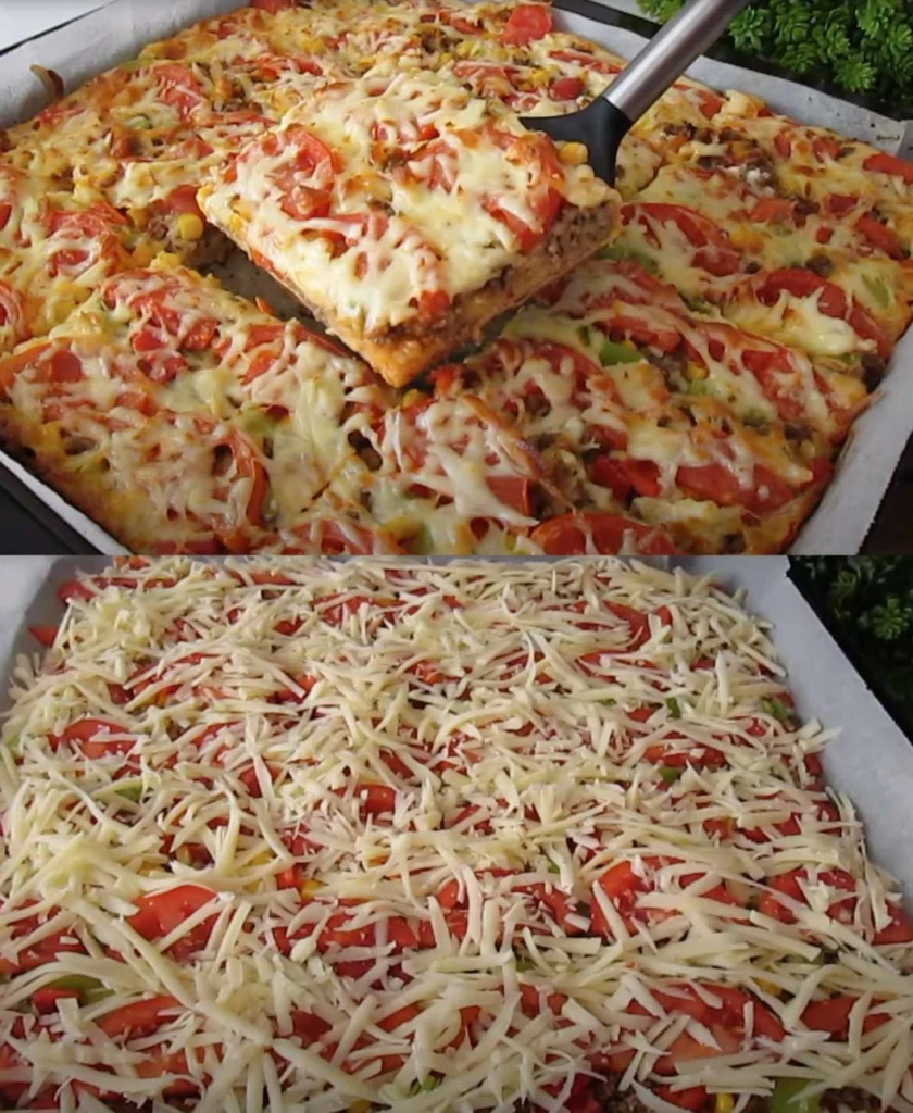 This lazy pizza is a great way to make homemade pizza without effort. The no-knead dough will save you time, while the result will be just as great. With variable toppings you can customize the pizza to your own taste. The whole family will love this recipe and you’ll come back to it because it’s quick, tasty and simple!