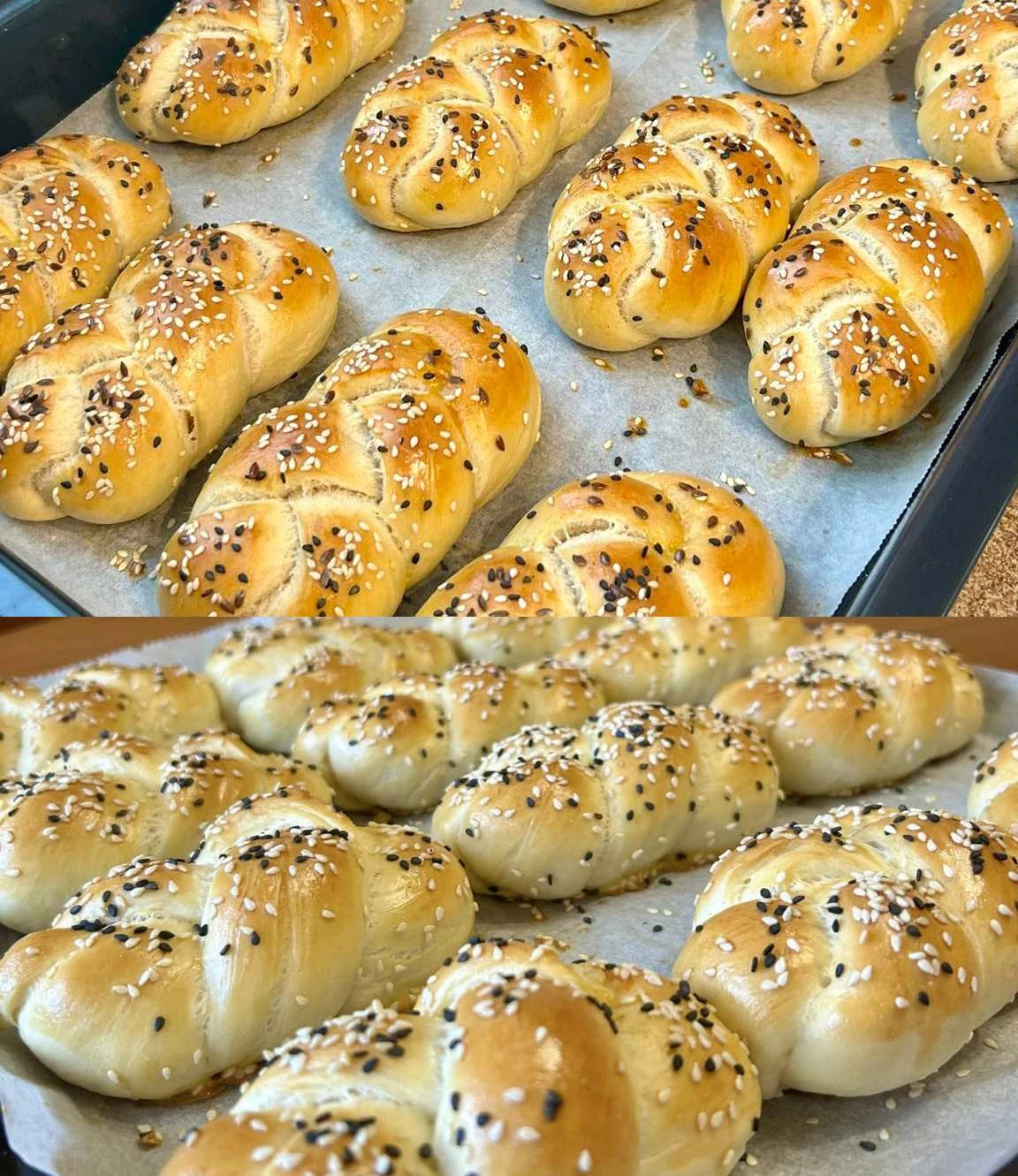 • Shaping the rolls Divide the risen dough into 8 equal portions and shape them into rolls. Place them on a baking sheet lined with parchment paper and let rise for another 30 minutes.