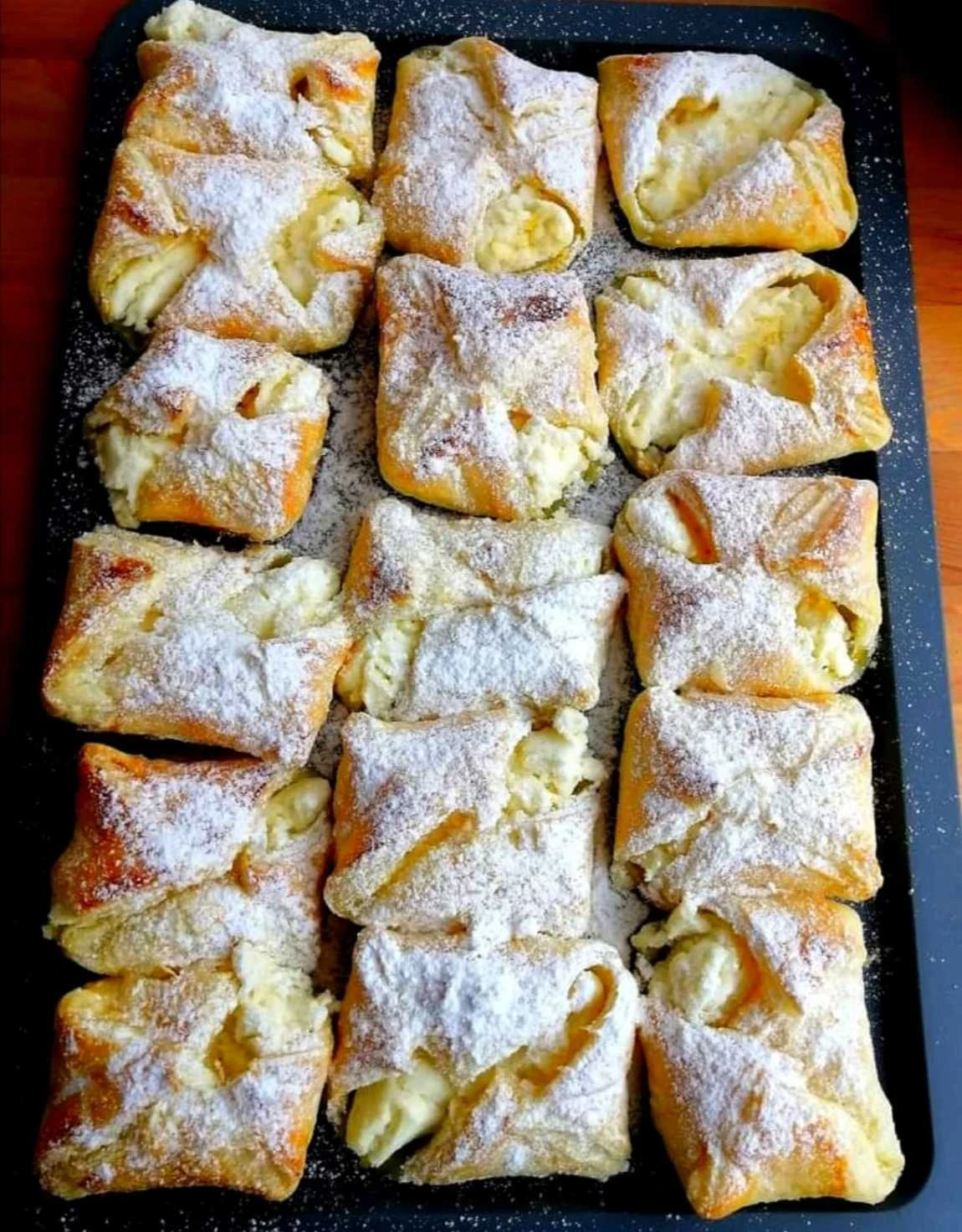 Homemade turnovers with quark, poppy seeds and jam are a dessert that will please everyone. Thanks to the combination of three different fillings they are flavorful, tender and absolutely irresistible. They are suitable not only with coffee but also as a sweet treat for any celebration. Try them — you won’t regret it!