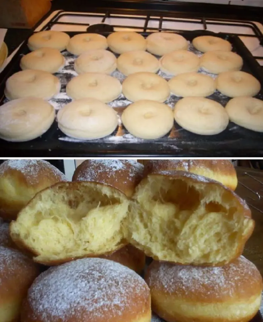 Homemade yeast doughnuts according to an old family recipe are fluffy, soft and fragrant just as we remember them from childhood – an ideal honest sweet pastry with coffee or tea. If you want to try other proven sweet yeast treats, we recommend trying doughnuts with a sour cream filling, which are simple and tender, or the classic homemade doughnuts like grandma’s filled with jam, which will delight with their sweet filling and traditional taste. These recipes are great inspiration for all lovers of homemade pastries.