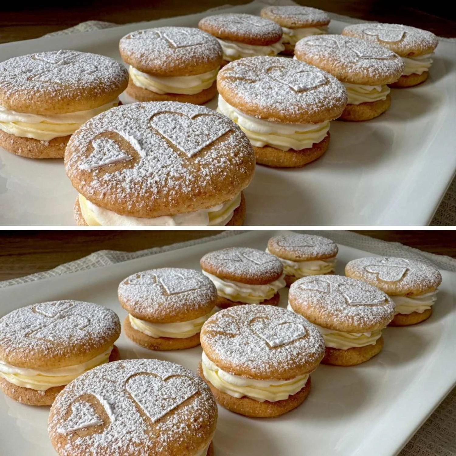 If you want to store the rounds longer, omit the whipped cream and sandwich only with the cream; you can add the whipped cream just before serving.