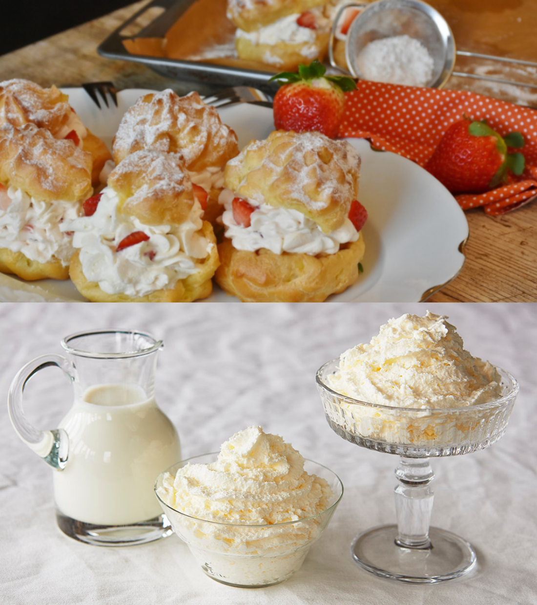 This recipe is a great lifesaver when you don’t have whipping cream on hand. Whipped cream made from milk will surprise you with its firmness, taste, and simplicity. Try the trick used by professional pastry chefs, and have whipped cream ready at any time – even without cream.