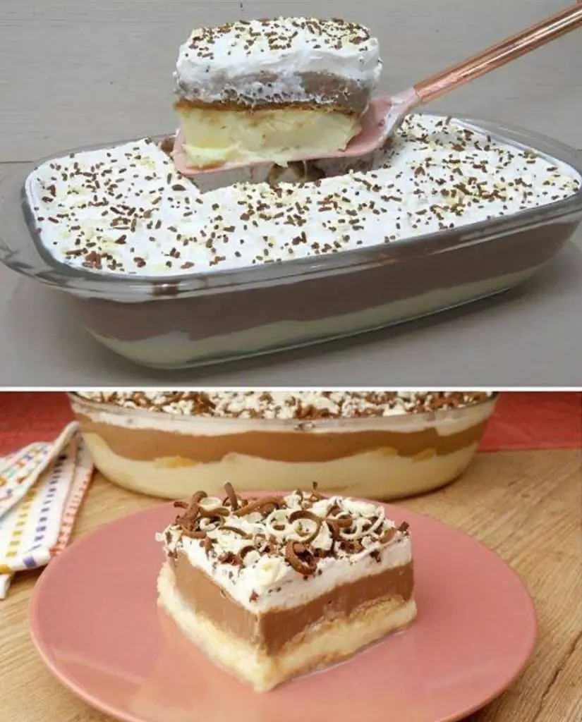 This no-bake creamy dessert is an ideal choice when you want to prepare something delicate, sweet and yet absolutely simple. It holds its shape well, tastes great and always makes an impression – whether you serve it at home, to guests or prepare it for family celebrations. Thanks to the biscuits, the two types of creams and the whipped cream layer, it is perfectly balanced and pleasantly light.