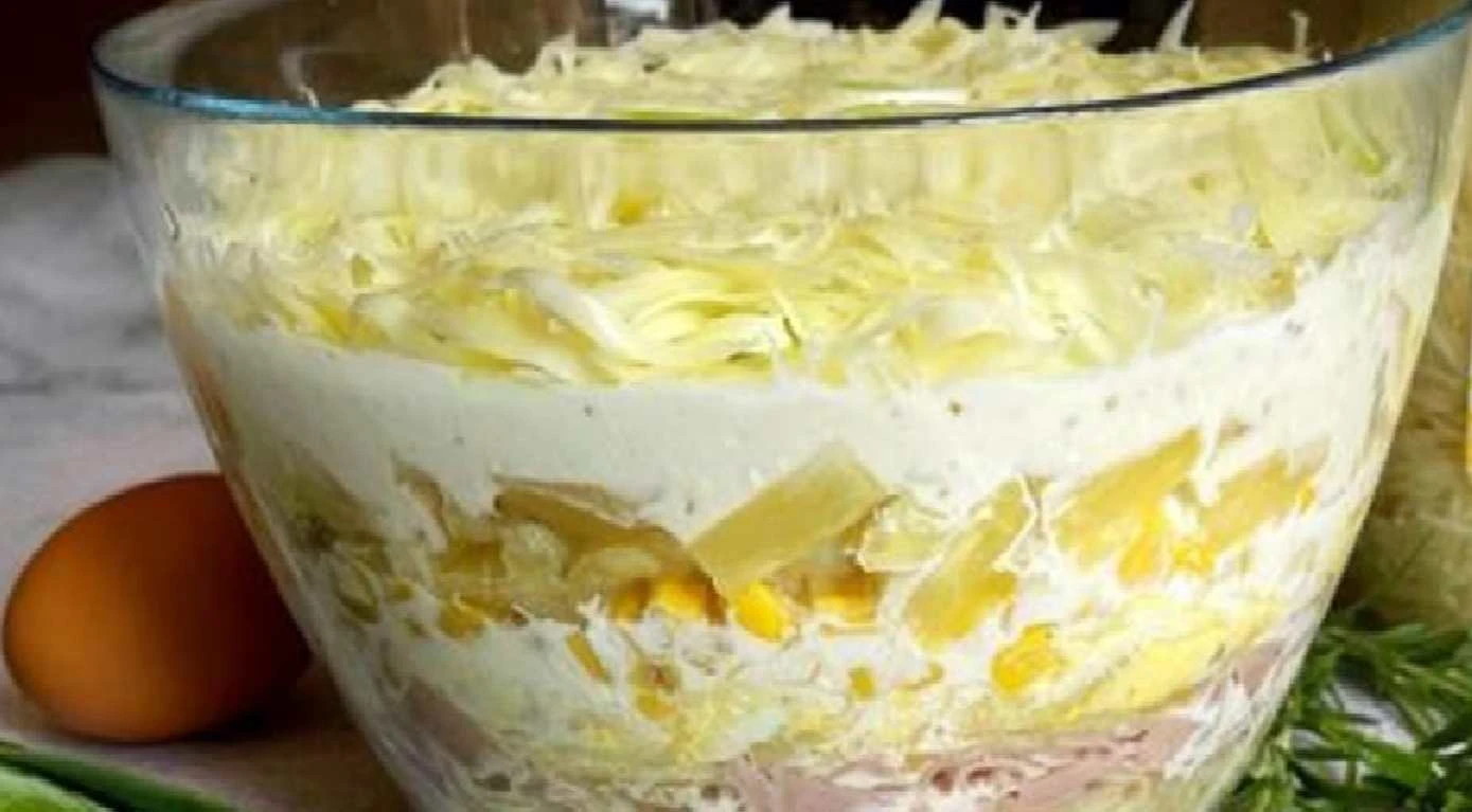 Layered salad with pineapple, ham and cheese is a sure bet: you can prepare it in advance, it looks impressive and disappears from the plate at lightning speed. Thanks to the rested layers every bite is perfectly balanced – an ideal recipe for all celebrations and family gatherings.