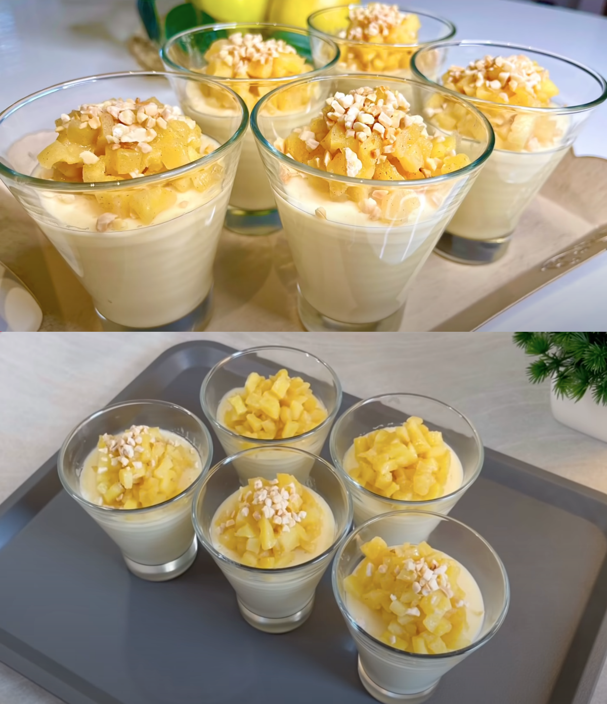 • Finishing: After the cream has cooled, layer about a tablespoon of the caramelized apples into each glass. Finally, sprinkle with chopped nuts or almonds.