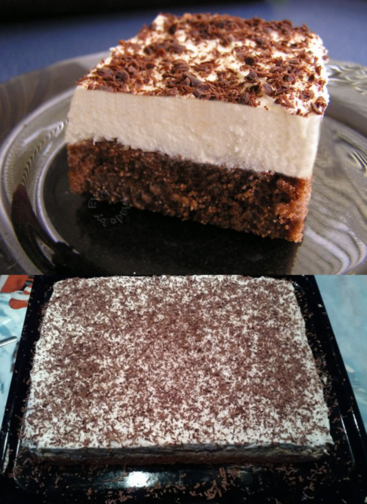 • Preparing the second filling: In a large bowl, whip the whipping cream until stiff. Spread it evenly over the coffee filling and place in the refrigerator overnight so the dessert sets well.