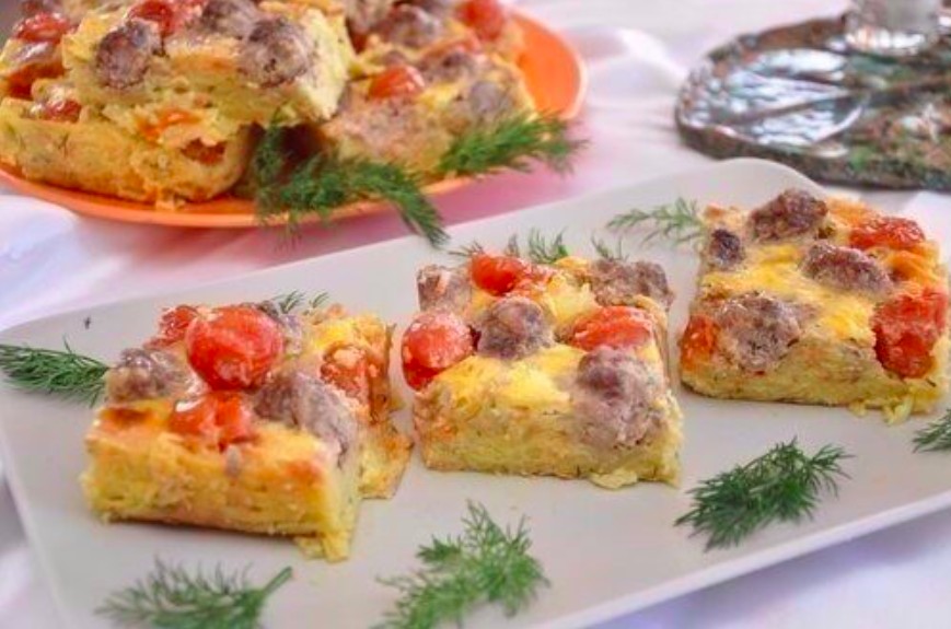 Meatballs with grated vegetables and potatoes on one baking sheet recipe