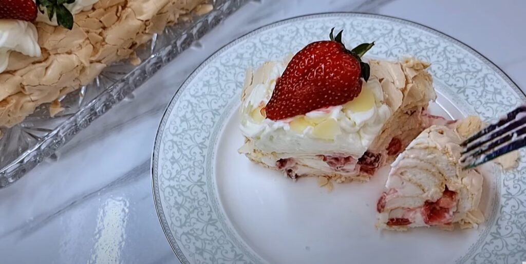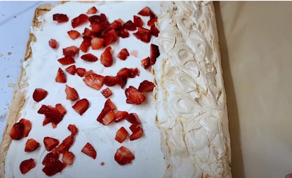 Meringue delight: A creamy dessert with strawberries that melts in your mouth