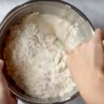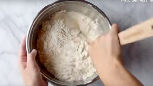 - Put all dry ingredients into a bowl, stir, add the water and stir again, cover with plastic wrap and let rise for 12 hours.