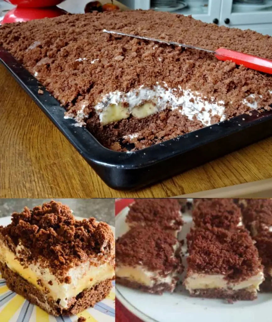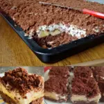 Mole cake on a baking sheet is a great option for enjoying a favorite dessert without time-consuming shaping. The taste is just as delicate, full of bananas, cocoa and creamy filling. Moreover, it is ideal for a larger number of people and always disappears immediately. If you’re looking for a dessert that is sure to be a hit – this one is choice number one.