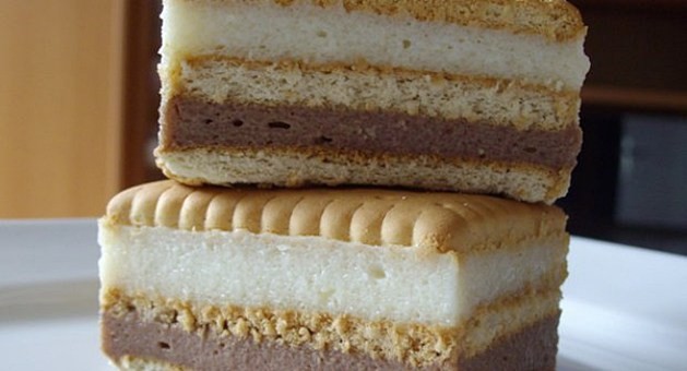 If you’re looking for a quick dessert that’s both delicious and easy to prepare, these chocolate-cream squares will delight you. You don’t need an oven because the dessert is no-bake, and with two types of cream and cookies you’ll get delicious layers. The result is delicate and as tasty as a masterpiece.