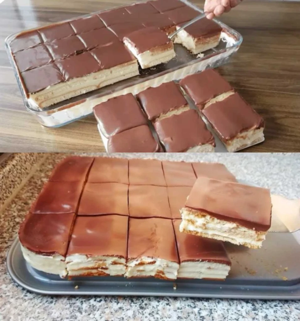 This quick dessert with coffee and sour cream is ideal when you need something sweet without complicated cooking. The combination of a delicate cream, refreshing sour cream and chocolate glaze creates a perfect harmony of flavors. Great as a treat for guests, with coffee, or as a sweet finish to lunch. Try it and fall in love with it!